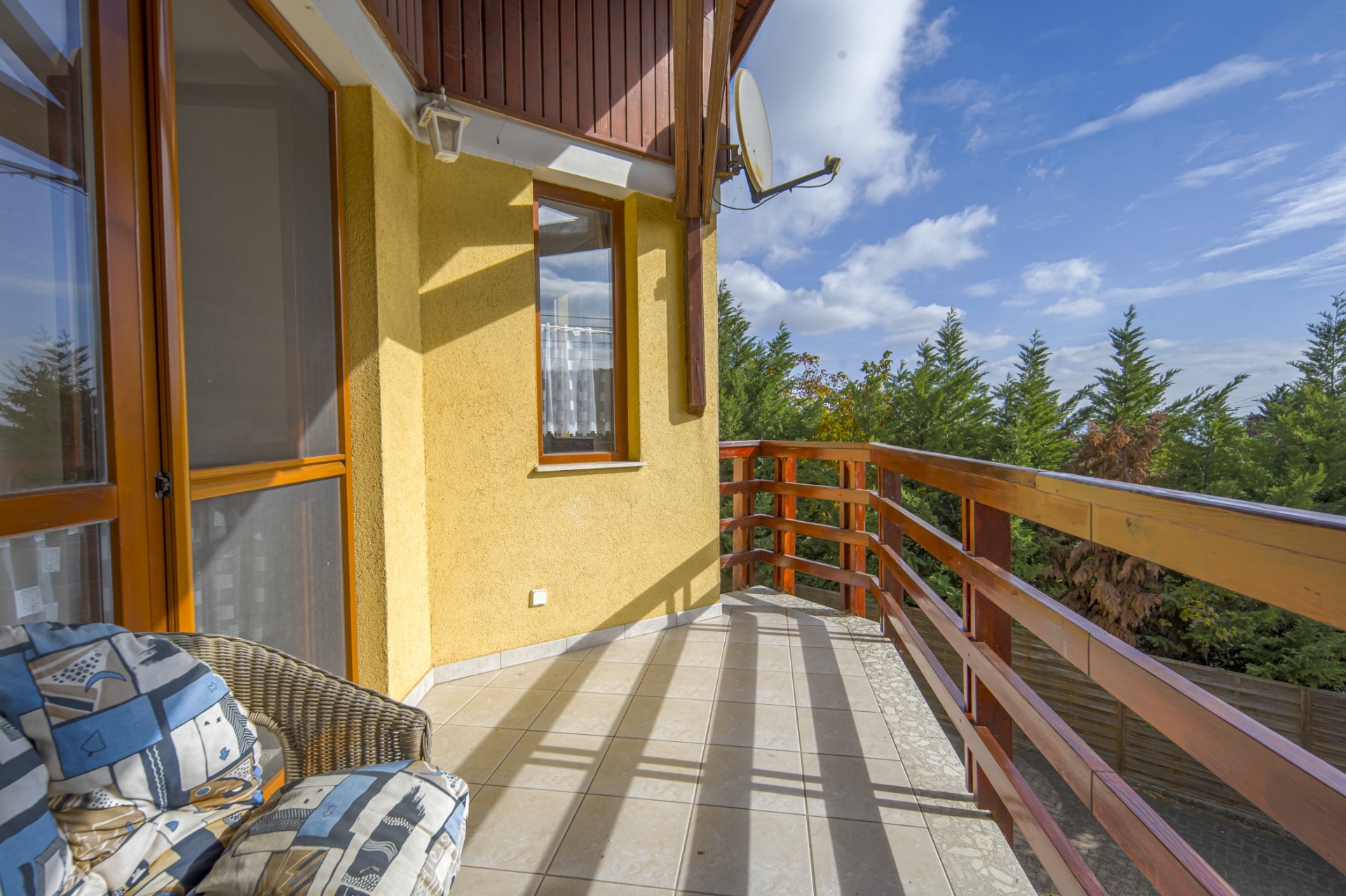 A két nagyméretű terasz/ 10 m2 és 25 m2/ és a gondozott kert a mindennapi pihenéshez és a kerti partikhoz is kiváló helyszínt biztosítanak.